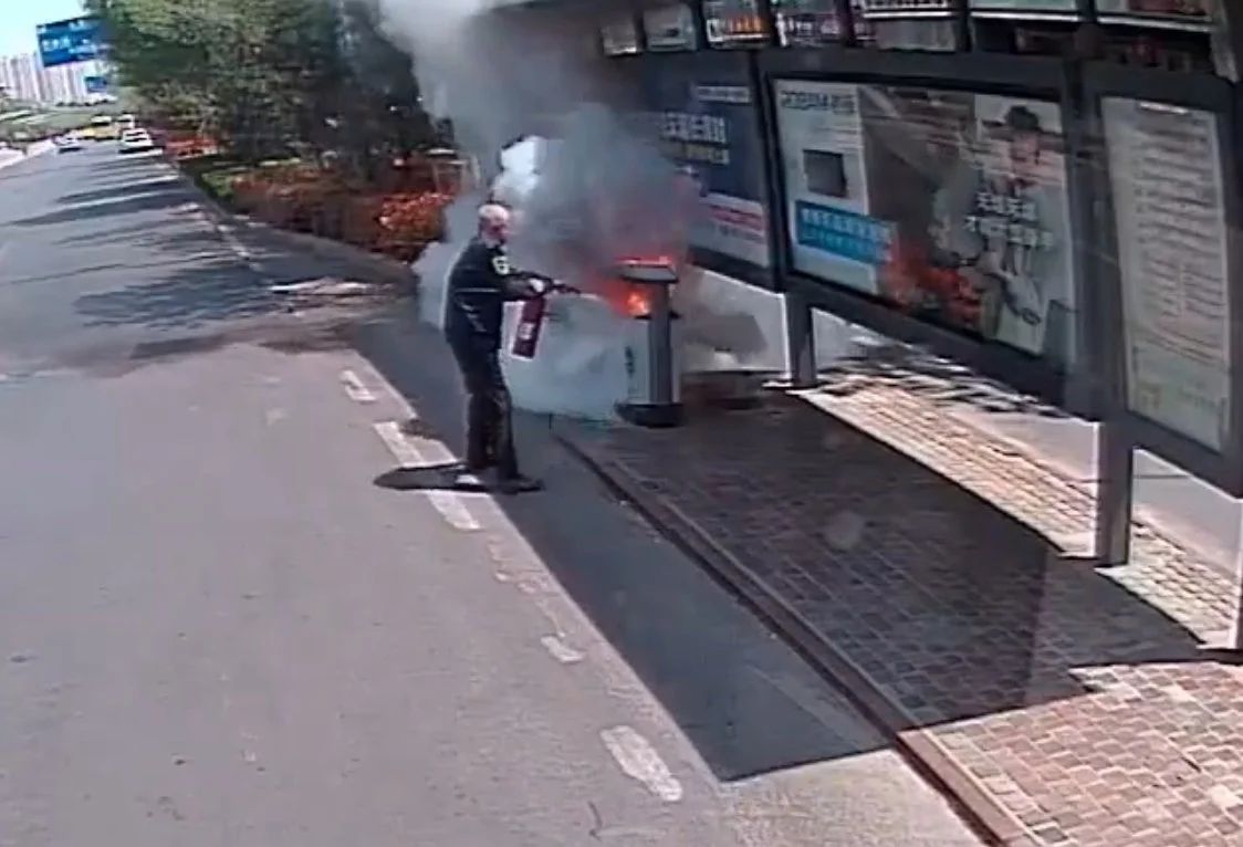 當(dāng)日12時30分許,趙正水駕駛魯J07959D公交車行至榮軍醫(yī)院站,發(fā)現(xiàn)站臺港灣處的垃圾桶濃煙滾滾,伴有明火。面對突發(fā)火情,趙正水立即將車輛??恐涟踩珔^(qū)域,開啟雙閃警示燈,并安撫車內(nèi)乘客:“請大家不要驚慌,我下車處理火情,很快回來!”隨即,他迅速取出車載滅火器沖向火源,對準(zhǔn)起火點精準(zhǔn)噴射,僅用一分鐘便撲滅明火。為防止復(fù)燃,他又返回車內(nèi)取水,對燃燒殘留物進(jìn)行澆水降溫,確認(rèn)隱患徹底消除后,才回到駕駛崗位繼續(xù)運營。