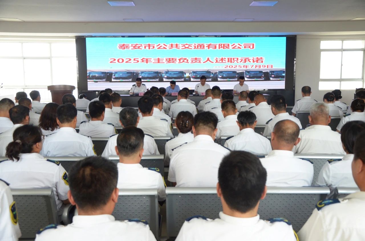 7月9日,泰安公交召開主要負(fù)責(zé)人述職承諾大會(huì)。市交通運(yùn)輸局道路運(yùn)輸管理服務(wù)中心公交科科長田繼軍出席本次會(huì)議。泰安公交領(lǐng)導(dǎo)班子成員、各單位主要負(fù)責(zé)人、安全生產(chǎn)負(fù)責(zé)人及職工代表共計(jì)80余人參加。